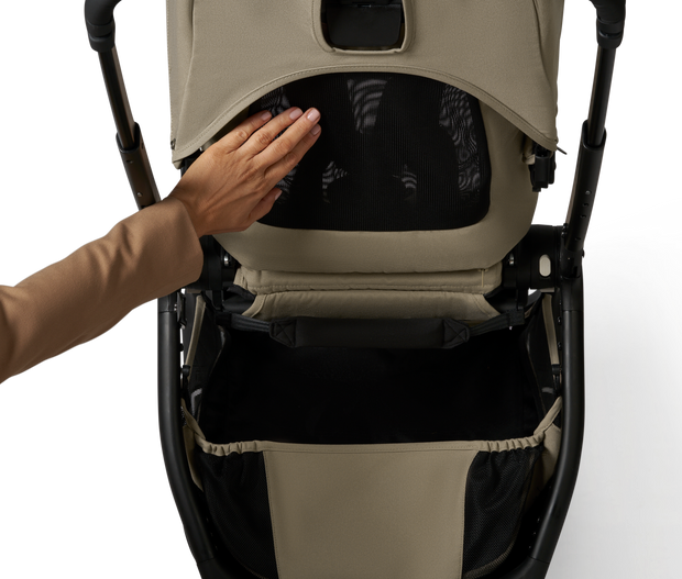 - Ventilated extension canopy- Provides sun protection and features a large mesh panel for breathability which can be opened and closed
